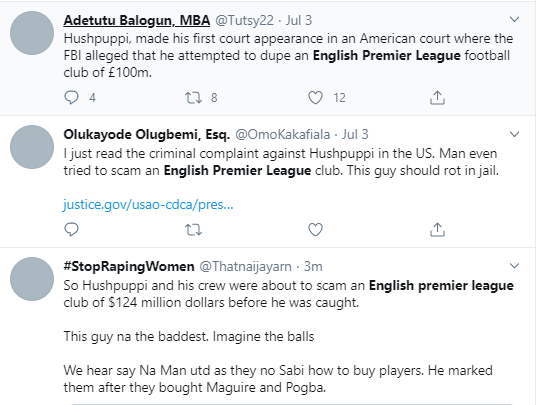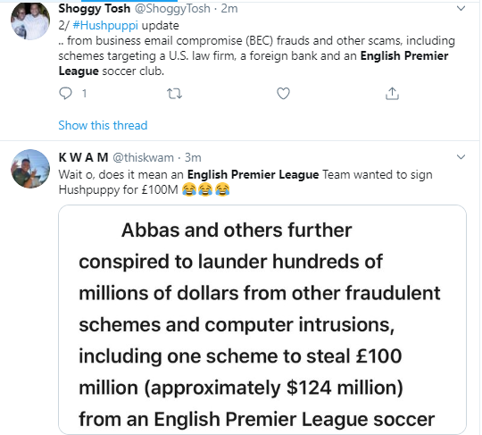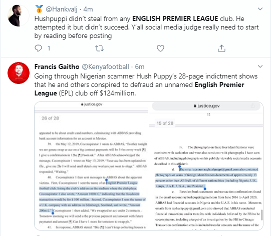 Hushpuppi Tried To Steal 124 Million From An English Premier League Club Us Federal Prosecutors Officially Charge Hushpuppi For Fraud Faces 20 Years In Us Prison Truenewsgist Com from www.yabaleftonline.ng Find nigerian news, entertainment, lifestyle, sports, music, events, jobs, sme listings and much more. An affidavit claimed that hushpuppy was involved in a scheme to steal $124 million from an unnamed english premier league soccer team. Jun 26, 2021 · perhaps most notably, abbas was among other charges accused of a scheme to steal $124m (n51bn) from an english premier league soccer club in may 2019. We would like to show you a description here but the site won't allow us.