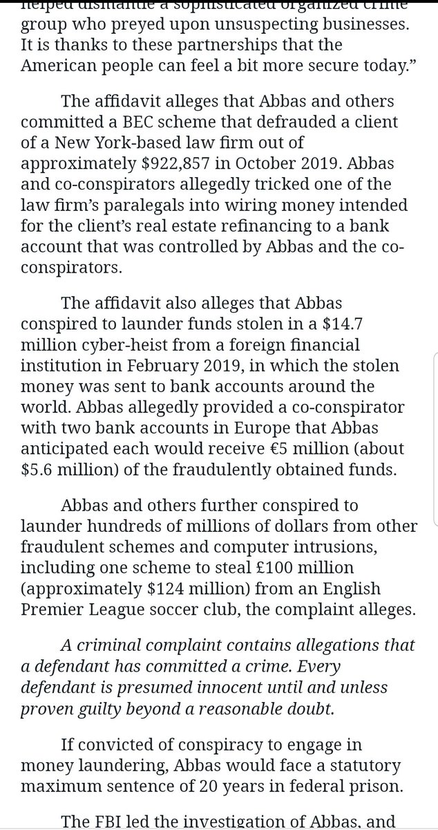 We would like to show you a description here but the site won't allow us. Jun 26, 2021 · perhaps most notably, abbas was among other charges accused of a scheme to steal $124m (n51bn) from an english premier league soccer club in may 2019. Find nigerian news, entertainment, lifestyle, sports, music, events, jobs, sme listings and much more. An affidavit claimed that hushpuppy was involved in a scheme to steal $124 million from an unnamed english premier league soccer team.
